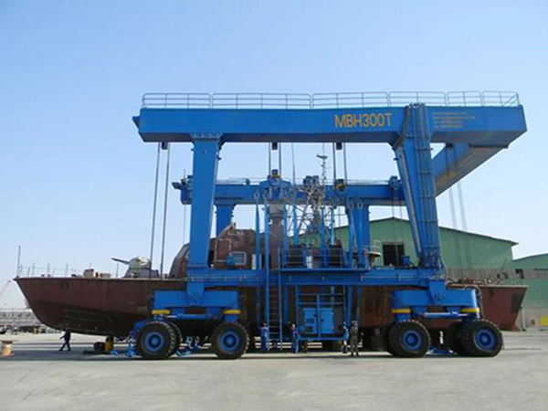优化行走机构,采用全轮转向 + 防滑轮胎,减小转弯半径,提升在狭窄船坞内的通行效率,尤其适合多游艇密集排布的堆场。